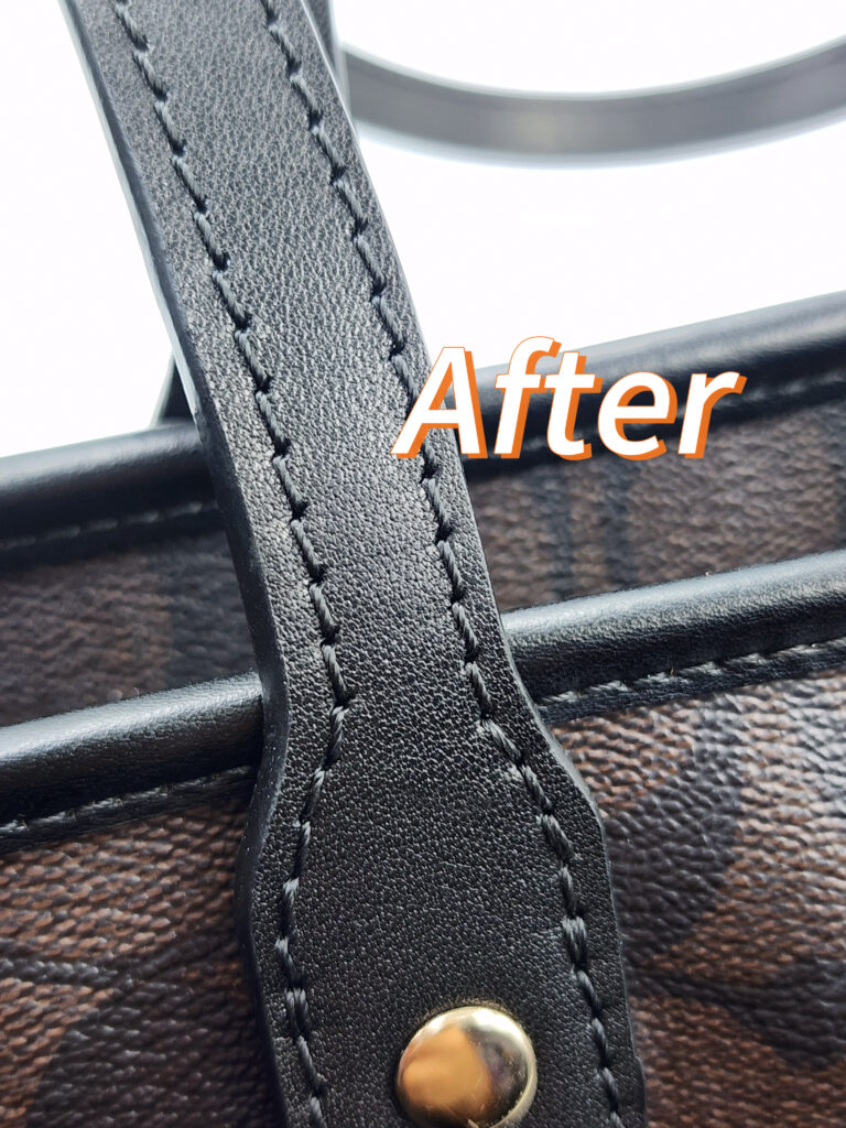 重新換上新皮革與縫線後,不僅結構更穩固,也恢復了精品應有的質感與價值。
